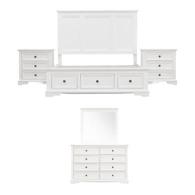 Celosia 5pc King Bed Frame Bedroom Suite Bedside Dresser Mirror Package - White
