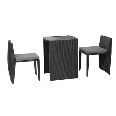 Gardeon 3pc Bistro Wicker Outdoor Furniture Set Black
