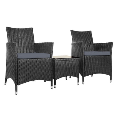 Gardeon 3 Piece Wicker Outdoor Furniture Set - Black