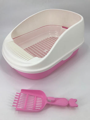 Large Portable Cat Toilet Litter Box Tray with Scoop and Grid Tray Pink