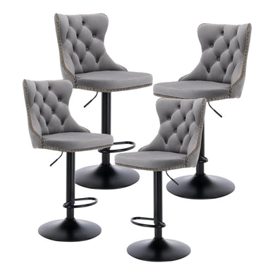 4x Height Adjustable Swivel Bar Stool Velvet Stud Barstool with Footrest and Chromed Base- Gray