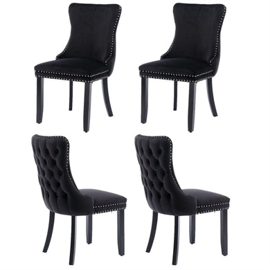 4x Velvet Dining Chairs Upholstered Tufted Kithcen Chair with Solid Wood Legs Stud Trim and Ring-Black