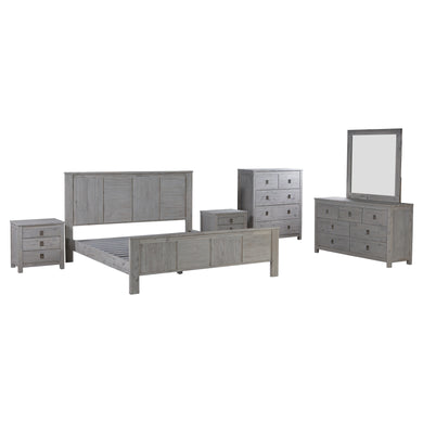5 Pieces Bedroom Suite King Size Silver Brush in Acacia Wood Construction Bed, Bedside Table, Tallboy & Dresser