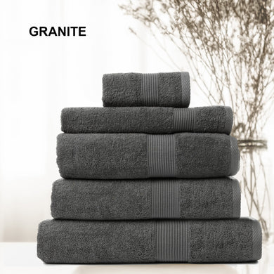 Royal Comfort 5 Piece Cotton Bamboo Towel Set 450GSM Luxurious Absorbent Plush - Granite