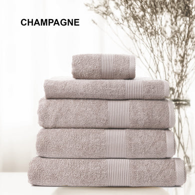 Royal Comfort 5 Piece Cotton Bamboo Towel Set 450GSM Luxurious Absorbent Plush - Champagne