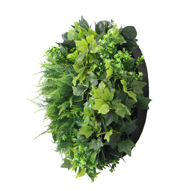 Slimline Artificial Green Wall Disc Art 60cm Mixed Green Fern & Ivy (Black)