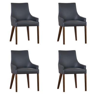 Tuberose Dining Chair Set of 4 PU Leather Solid Acacia Wood Furniture Dark Grey