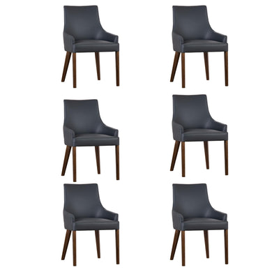 Tuberose Dining Chair Set of 6 PU Leather Solid Acacia Wood Furniture Dark Grey
