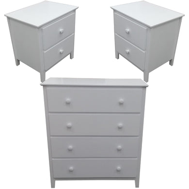 Wisteria Bedside Tallboy 3pc Bedroom Set Drawers Nightstand Storage Cabinet -WHT