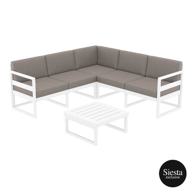Mykonos Lounge Corner Set - White with Brown Cushions