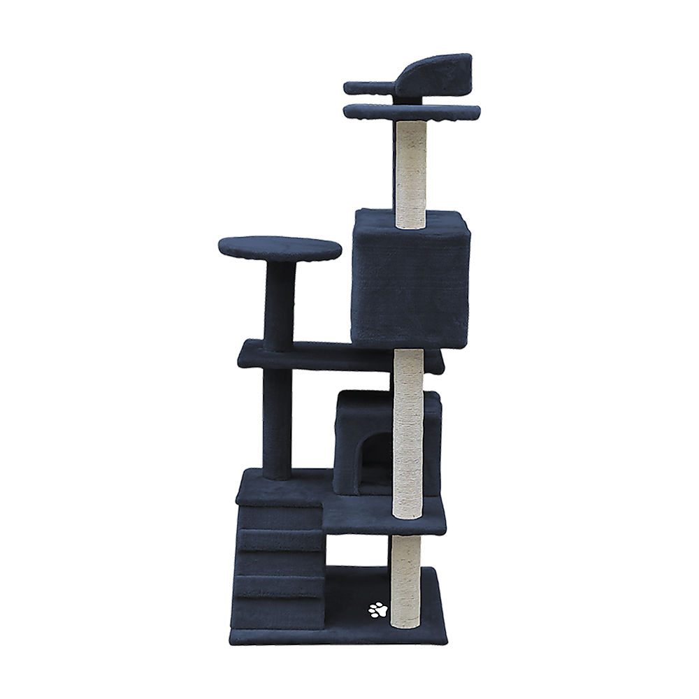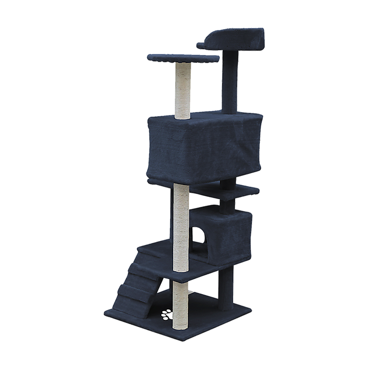 This cat condo is as durable as it is beautiful. With nine strands of rugged sisal wrapped around the scratching posts and thick boards and posts, it's designed to last for years. No formaldehyde is used in its manufacture, so you'll never have to worry about foul odours or toxic fumes in your home. With all the activities and climbing your cats will enjoy, they'll maintain a healthy weight. With a weight capacity of 25kg and a variety of perches, it's perfect for a multi-cat household. Don't wait until your cat scratches your best sofa to buy your pets a place of their own. Order your cat condo today!