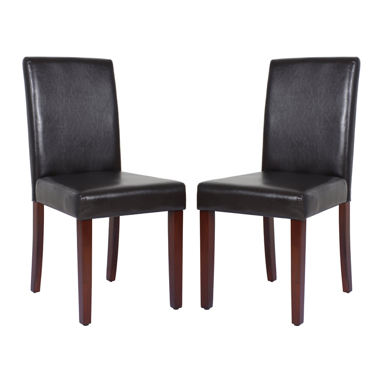 This contemporary, wooden dining chair is the ideal addition for your dining area. This generously sized chair features a padded, upholstered leatherette seat, mid high back rest and solid pine wood legs for strong support.