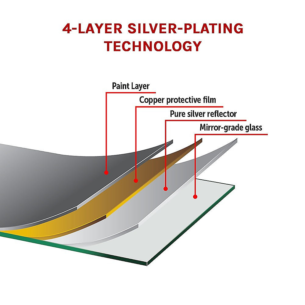 - Material: MDF, silver plating, high quality powder coated finish and mirror-grade glass