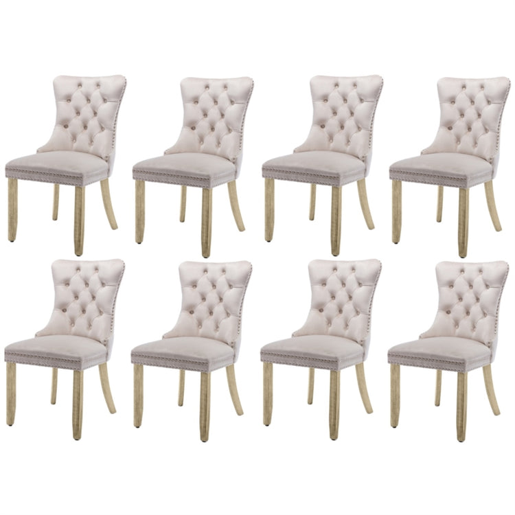 8x Velvet Dining Chairs Upholstered Tufted Kithcen Chair with Solid Wood Legs Stud Trim and Ring-Beige
