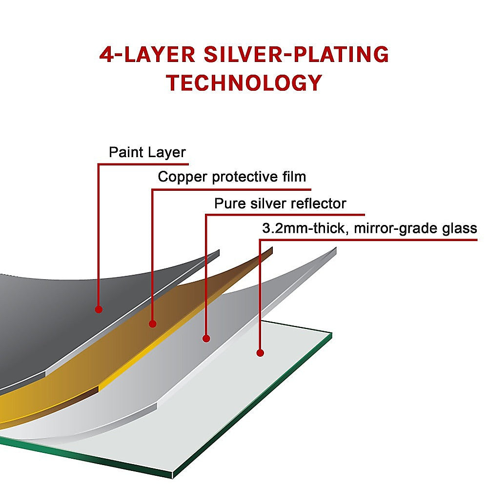 - Material: MDF, silver plating, high quality powder coated finish and mirror-grade glass