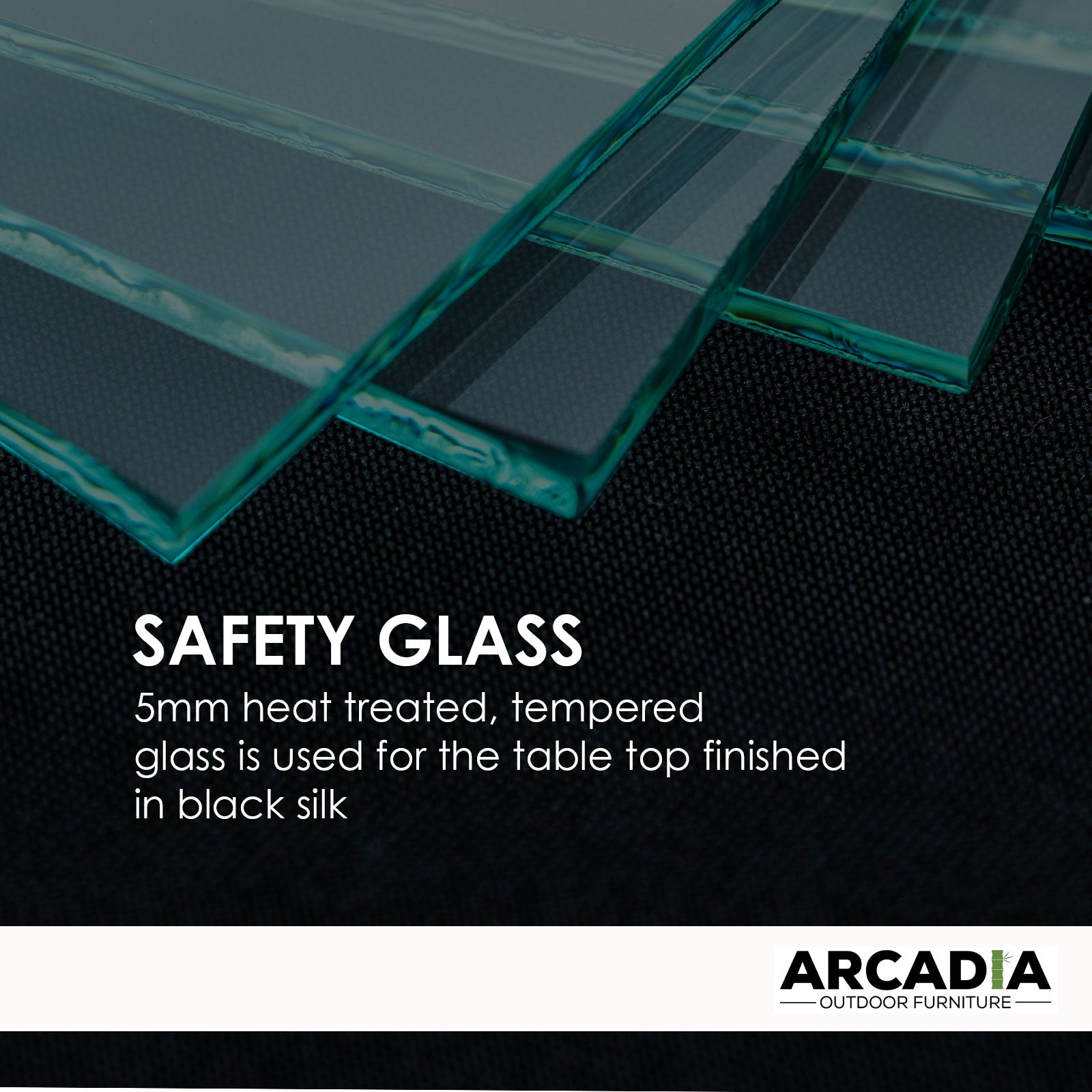 Material: Steel (Frame), PE Rattan (Outer), Tempered Glass (Tabletop), 180g polyester (Cushion Outer), Vertical Cotton (Cushion Fill)