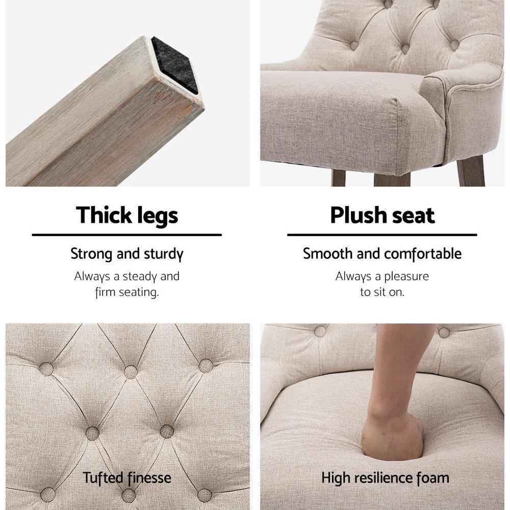 Oozing myriads of class and sophistication, the Cayes Dining Chair is upholstered in quality amber taupe linen over deep 13cm high resilience foam and set over a rubber wood frame.