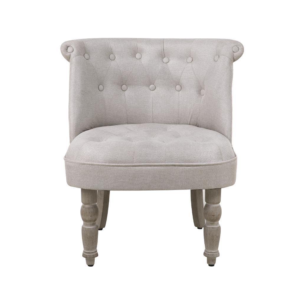 A chair full of charm and character. Reminiscent of 18th century furniture décor that graced many a provincial home in France, the Artiss Lorraine Armchair is a contemporary interpretation of this period design. Updated with delicate upholstered faux linen fabric, the Chair is peppered with lovely tufted buttons on its wide arch back for a look that is both alluring and classic. The generous padded seat offers exceptional comfort whilst the intricate front legs and curved back legs provide sturdy support with artistic flair. Not least, the rubber base back legs are extremely floor-friendly and castors on the front legs ensure easy mobility with this noble chair. Enjoy this piece de resistance in your elegant hallway, delightful living room or perhaps right beside your bed as an exquisite reading chair. Whatever’s your fancy, the Artiss Lorraine Armchair certainly deserves a hallowed place in your home.