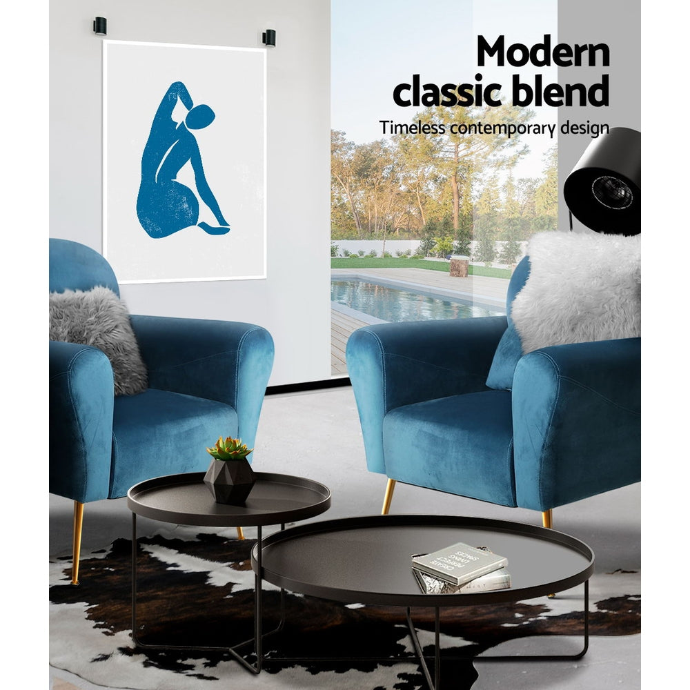Artiss Caroline armchair offers a wide and welcoming seat with comfortable rolled armrests for you to relax. It is ideal for every corner of your space where you want to add soft and comfy touches. You can style it in your living room, lounge room, or reading room. Crafted with great attention to details, this armchair feature solid wood construction with high resilience foam. It is quite sturdy and will withstand the test of time. Our Caroline armchair is upholstered in soft velvet fabric that epitomises luxury with its smooth and shiny appearance and adds a cosy and relaxing feel to your space. Plus, the splayed golden metal legs with floor protectors will offer optimum stability and protection to your floors and add a luxurious charm to your space with its gorgeous presence.