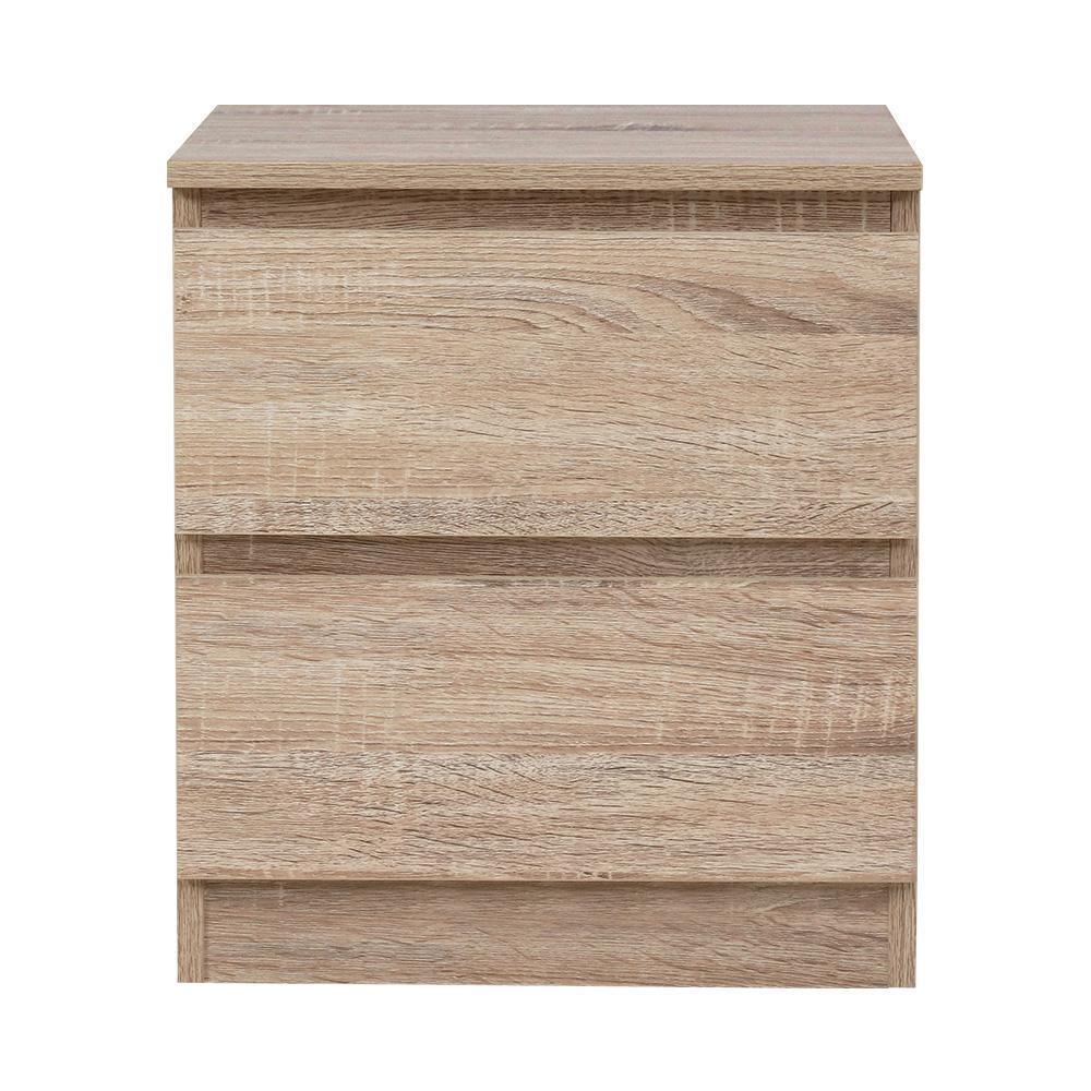 Made of 15mm thick particle board, the bedside table is sturdy and durable in every way. Two deep drawers sliding on smooth anti-rust runners provide ample storage space. Better still, the handle-free design gives it a modern vibe that stands out from the mundane. Not least, the finish is impeccable and easy to maintain and clean.