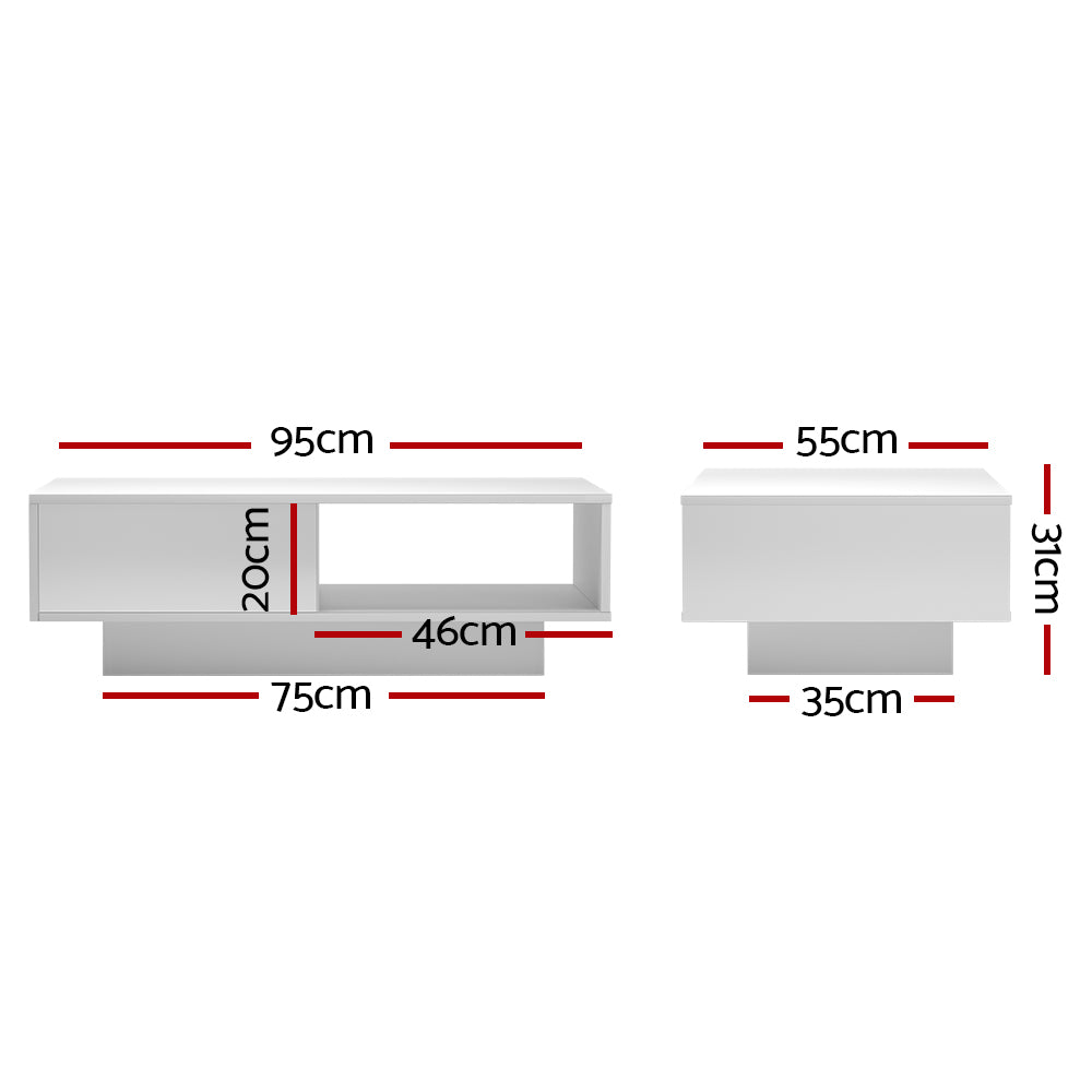 Flaunting a unique and beautiful design, the Artiss coffee table will light up your living room ambience with its colour changing LED lighting. You can customise its lighting from 16 LED lights to match your mood with remote control, which offers you the convenience of adding lighting even without a power outlet. This coffee table makes a great addition to the living room in any home style and blends seamlessly with other furniture pieces. You can even mix and match it with our LED series furniture. Finished with UV high gloss, this coffee table features a sturdy construction, which will expand its lifespan. The sturdy base adds to its durability, ensuring stable and steady use. With a drawer and an open shelf, you have ample space to store your household essentials neatly. And the wide surface area allows you to showcase your decorative objects with pride. Our coffee table can also be the perfect conversational furniture piece in your home bar lounge area. This modern coffee table, available in black and white, is full of elegance and novelty that will modernise your living room. Make it yours today with just a click.