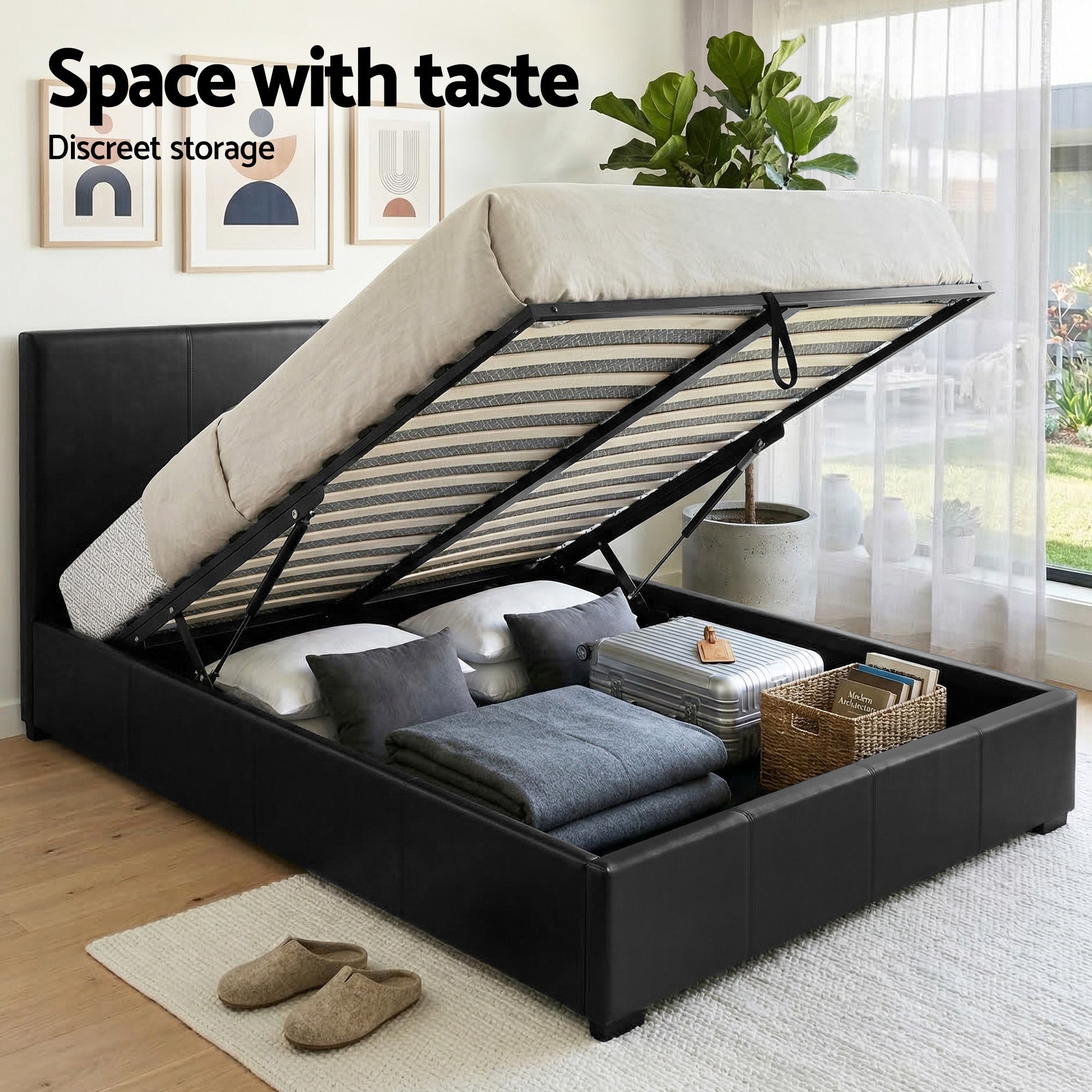 Upgrade Your Bedroom With Artiss Gas Lift Storage Bed Frame And 2 Bedside Table Set