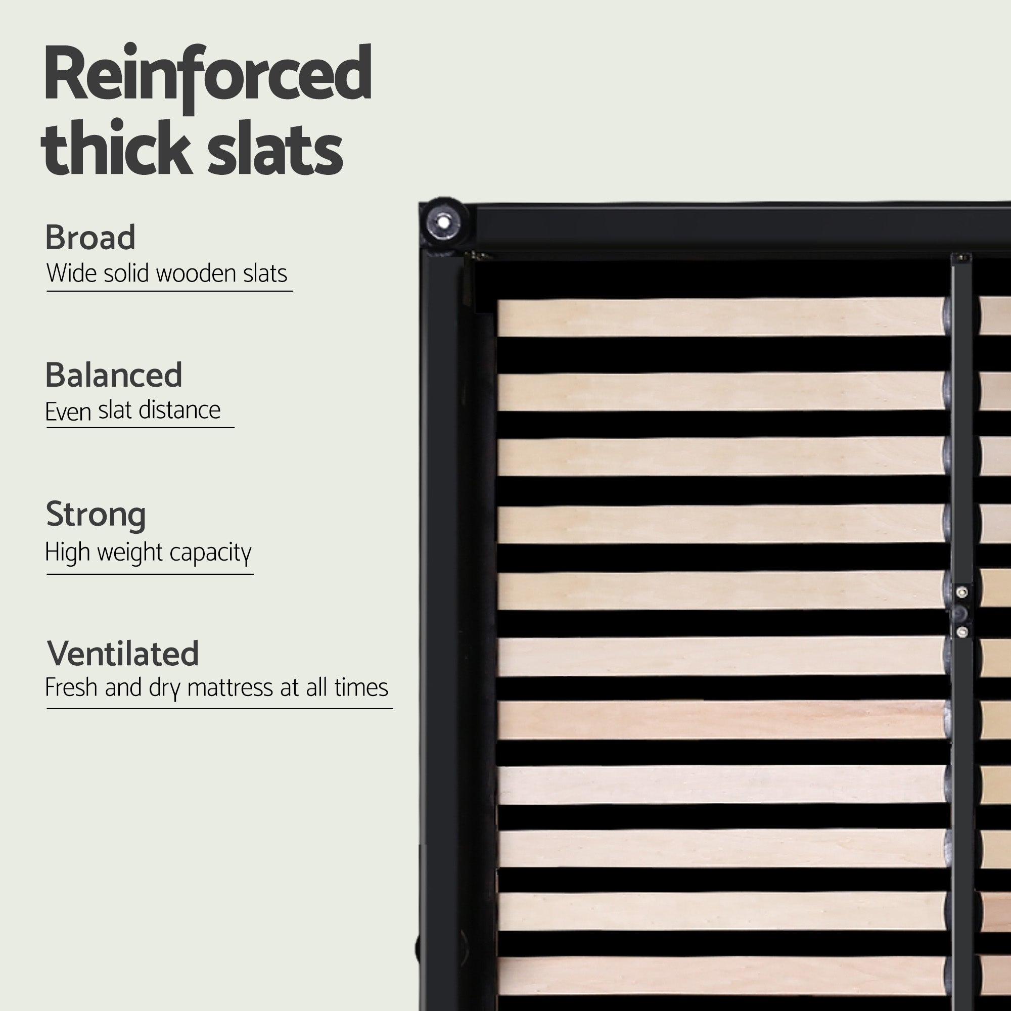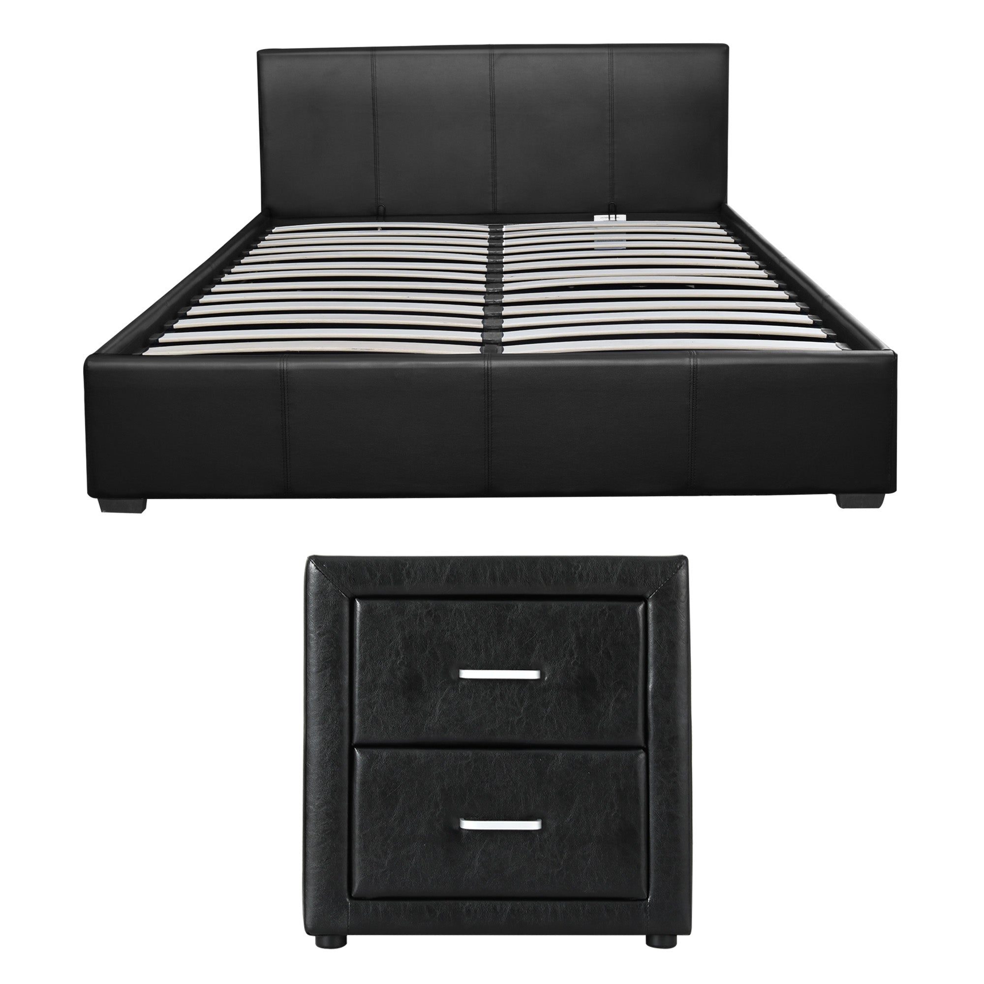 Artiss Gas Lift Queen Bed Frame and Bedside Table Set Leather Black
