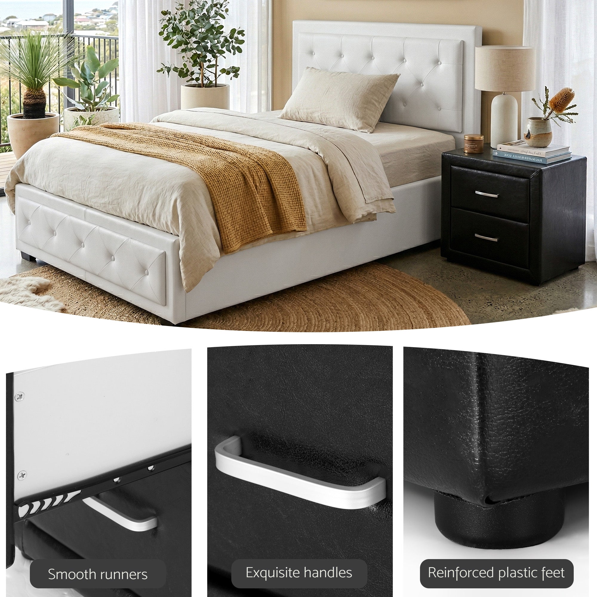 Transform your sleeping space into a functional and stylish sanctuary. This furniture set combines a Scandinavian-inspired tufted bed frame with a sleek, modern bedside table, providing both comfort and essential storage solutions for your bedroom or guest room. The bed is designed with a gas lift hinged base, revealing a spacious hidden compartment perfect for storing bulky blankets, out-of-season clothing, and extra pillows.