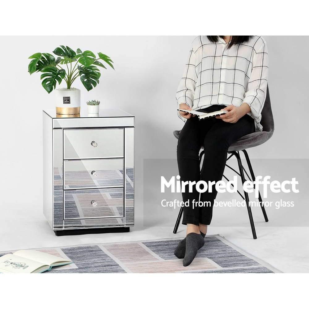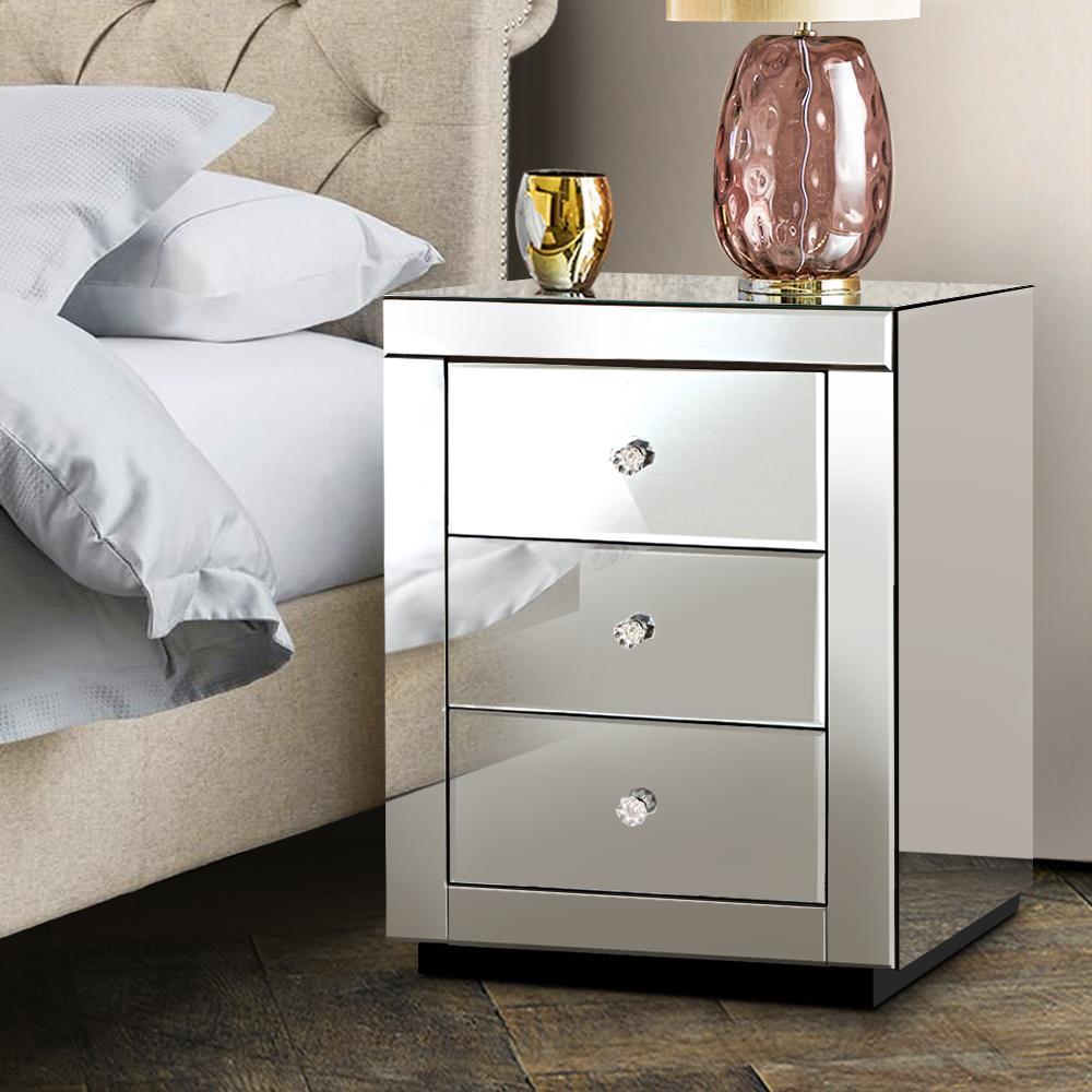 Large, luxurious mirrored bedside table with 3 large drawers for your nightstand.