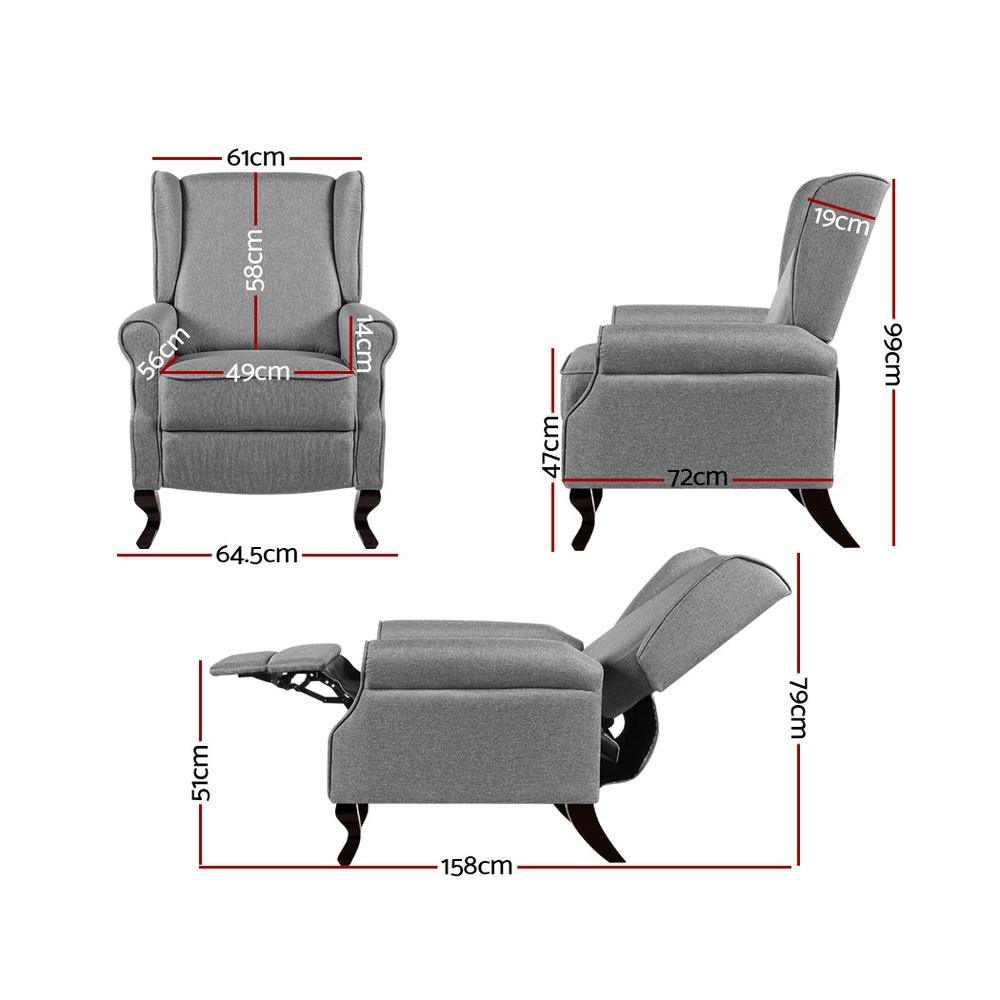 This stylish grey armchair is also a comfortable recliner chair! Though you'll never know! Meaning you can sophisticate your living room, lounge room or bedroom without bulk & ugliness! While still being supremely comfortable.