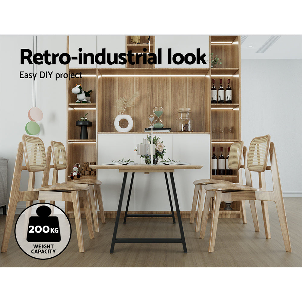 Give your existing furniture a tasteful twist with our Artiss metal table legs. Featuring beautiful trapezoid shape design, our industrial-style metal table legs will help you achieve a gorgeous retro classic look. It's designed to suit various furniture styles and can be used for benches, coffee tables, desks, and kitchen dining tables. The metal table legs come fully welded with 75mm wide tubes for ultimate support and stability. It boasts solid premium iron construction with black matt powder-coated and rust-resistant finish for durability. Its sturdy design and solid construction ensure that it will withstand many years of use. This commercial grade metal table legs also come with six pre-drilled holes that allows hassle-free installation, and the bonus feet pads prevents the floors from getting scratches and keeps them looking pristine. Shop these ultra-durable and sturdy metal table legs to enhance the stability and durability of the furniture and elevate your home's interior.
