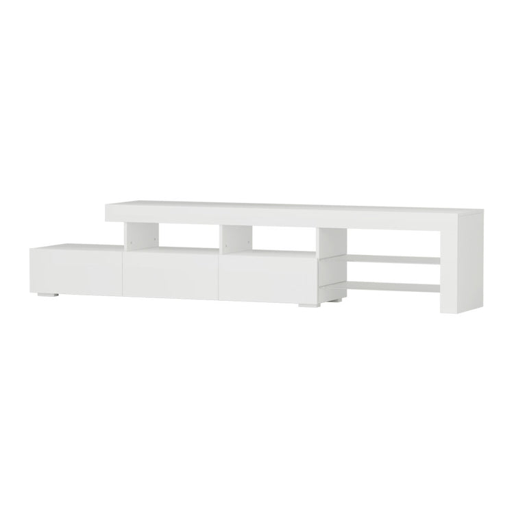 Want to add a WOW-effect to your living room? Our Artiss LED entertainment unit won’t disappoint you. Boasting a unique combination of functionality and creativity, this entertainment unit is designed to enhance your living space and create a pleasant ambience. The entertainment unit features built-in RGB LED lighting that you can customise into 16 different colours and four flashing modes with a touch of a button. It will perfectly complement your modern home décor and enable you to achieve a one-of-a-kind look. Having been constructed from 15mm thick particle board with UV high gloss on the front and melamine finish, this piece of furniture is quite sturdy and will withstand the test of time. It has spacious drawers with smooth metal runners for hassle-free operation and two tempered glass shelves to store all your entertainment paraphernalia. Bring this uniquely designed entertainment unit for your home today.