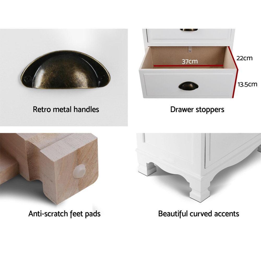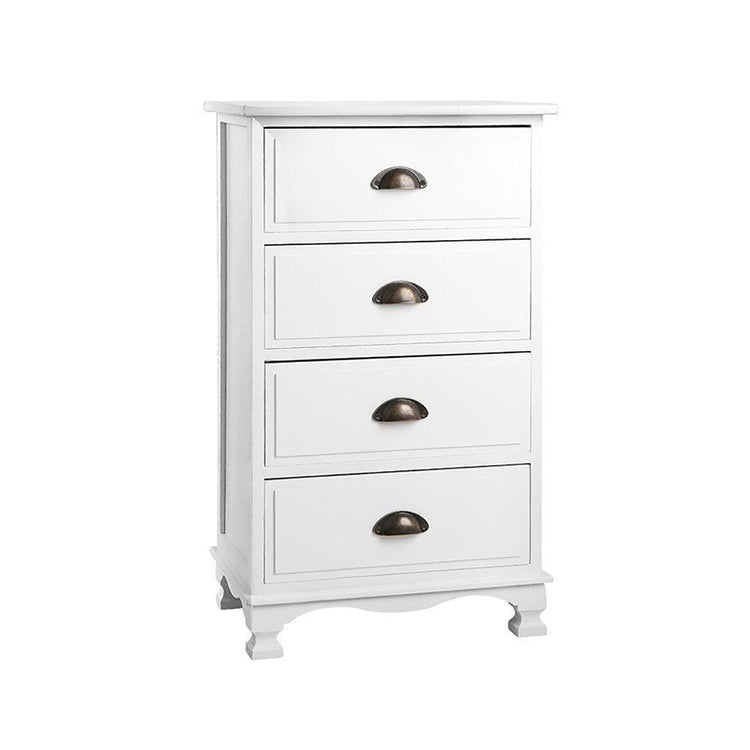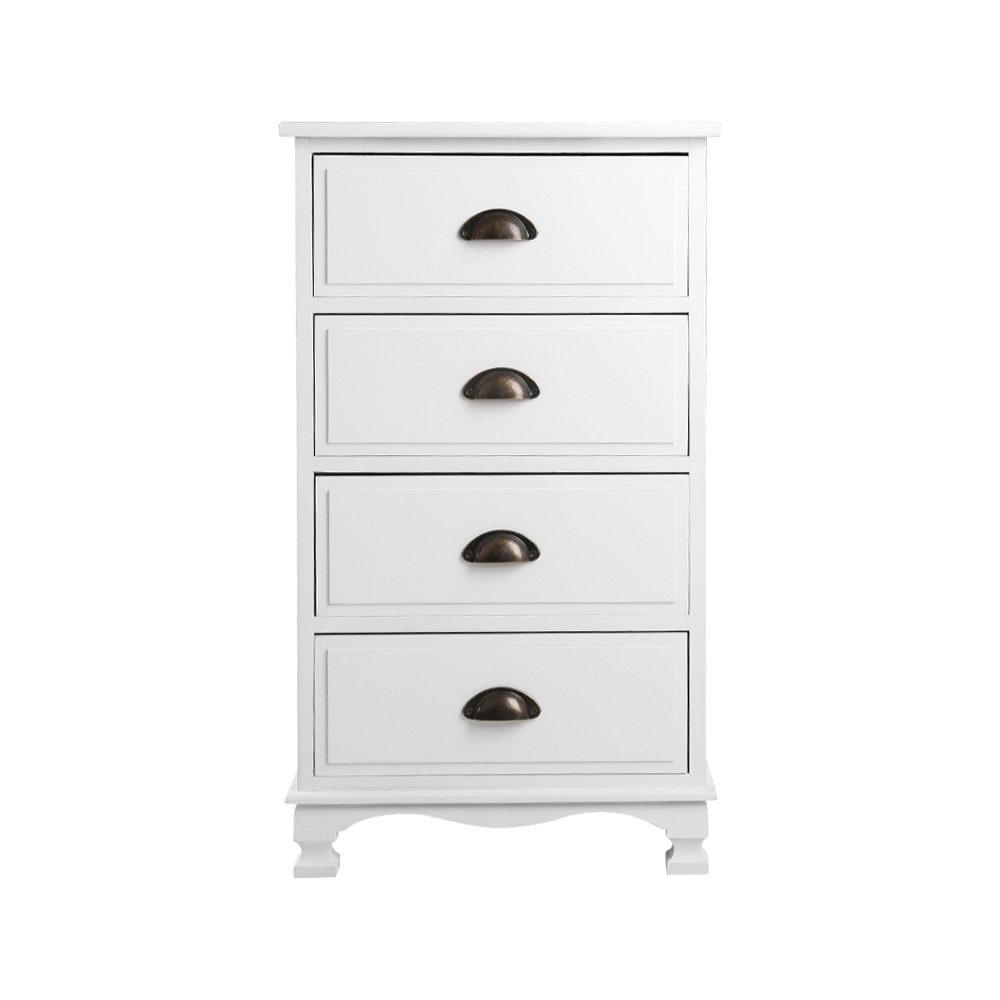 Add East Hampton to your home with this white farmhouse 4 drawer bedside table.