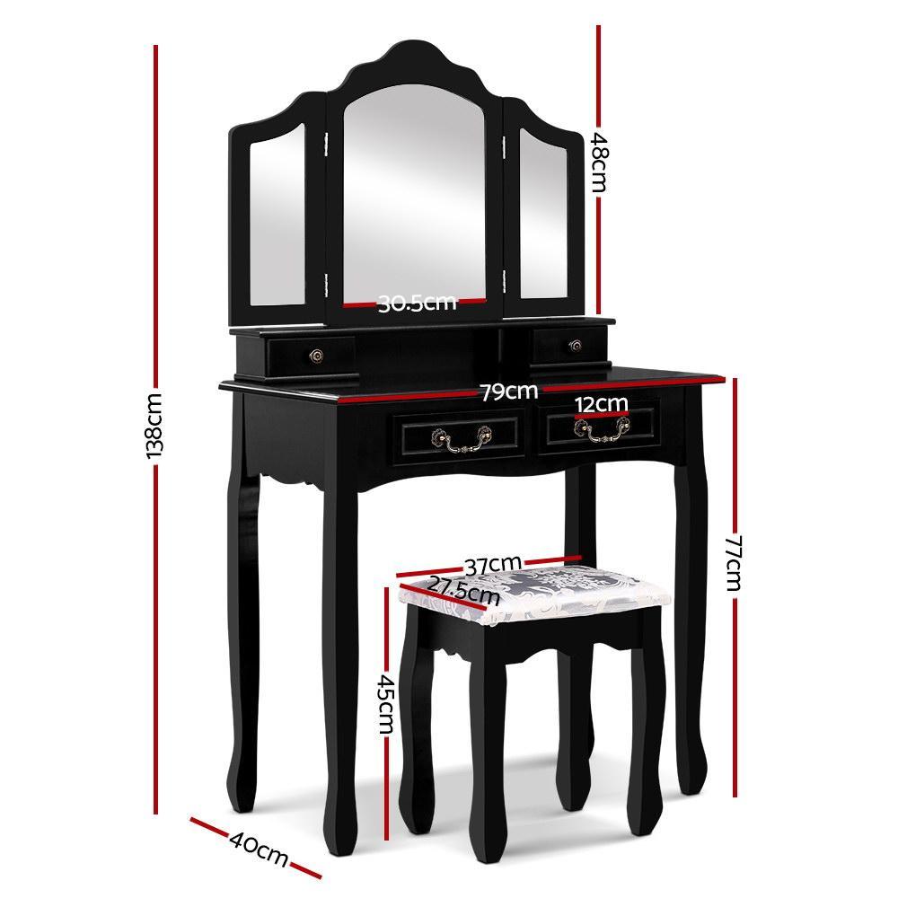 Dressing table dimensions: 79cm x 40cm x 138cm