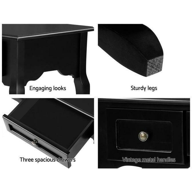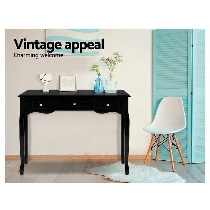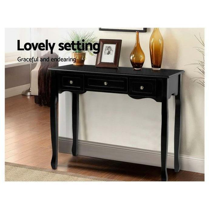 Welcome your guests with a touch of vintage class with our period-inspired Artiss Console Table. Perfect for the hallway, lounge or any room in your home that requires a standout piece, our French provincial console table offers a gracious presence with great functionality. Not least, it also serves as a wonderful front console table for your cafe or shop to welcome customers with chic and charm. Made of high quality MDF board for the tabletop and sturdy paulownia wood for the rest, the console table looks absolutely beautiful with its meticulous craftsmanship and fine lacquered finish. Three generous-sized drawers with exquisite antique-style metal handles provide ample storage space for your essentials and knick-knacks while the wide tabletop lets you display your favourite home décor in resplendent style. Make a grand entrance for your guests or even for yourself with our vintage console table. It will be a gracious welcome indeed.