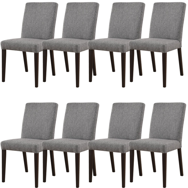 Nothing can replace the joy of having a scrumptious, home-cooked meal on a good-looking dining set. Feel the joy by complementing your dining table with this lovely 8-piece set of dining chairs. The chairs are crafted in the traditional style in stone grey colour and so they blends in with a variety of interior decor styles. The beautiful chairs are made of rubber wood, giving the furniture piece the required strength and beauty. The chairs are upholstered in Cavalli fabric in a granite shade, and tapered legs add to their style. The chair is eco-friendly as well, since the timber used in it is sustainably harvested. A two-year warranty is included with the fully assembled chairs.