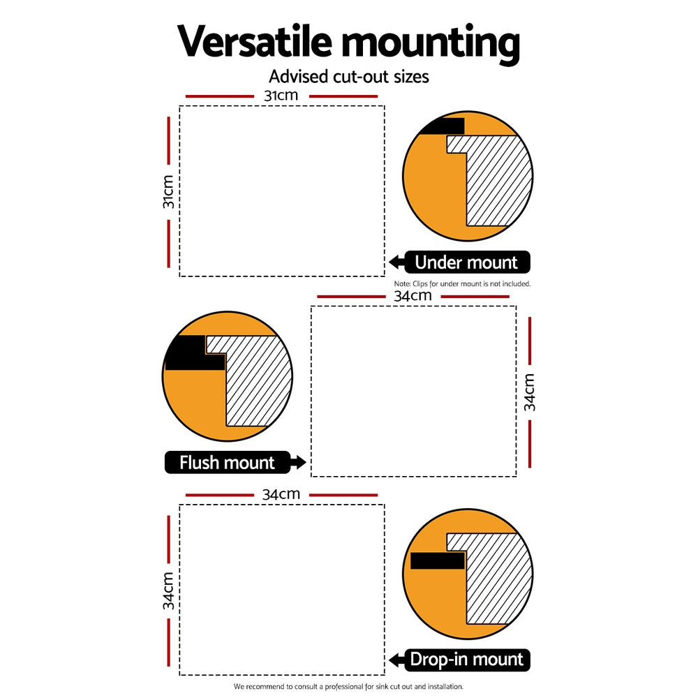 The Cefito Handmade Stainless Steel Sink is built to exacting standards so that you get the very best of quality materials and craftsmanship. It is crafted from heavy-duty food grade 304 stainless steel, unlike others that are made from inferior 201 grade or 304 imitations. Built to be scratch-proof, oil-proof and more importantly, bacteria-free, the silky-smooth satin-coated stainless-steel sink also features an X-flume design for easy drainage, deep and wide bowl for practicality, R10 rounded corners for safety and easy cleaning, eco-friendly anti-condensation paint, and five sound-deadening pads. Suitable for drop-in, flush-mount or under-mount installation, our stainless steel sink should have a definitive place in your uncompromising kitchen.