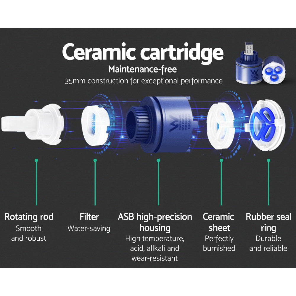 For a perfect mix of the right water temperature, our Shower Taps are simply convenient to use. The solid brass construction make this ensemble absolutely smooth and durable with a drip-free 35mm ceramic cartridge to prevent leakages. The brilliant chrome finish actually comprises a multi-layer finishing process with zinc, nickel and brass plating. The taps are marked as hot and cold markings for hassle-free use. Not least, the shower taps carry a WaterMark certification and comply with Australian standard AS/NZS 3718 for total peace of mind installation and use.