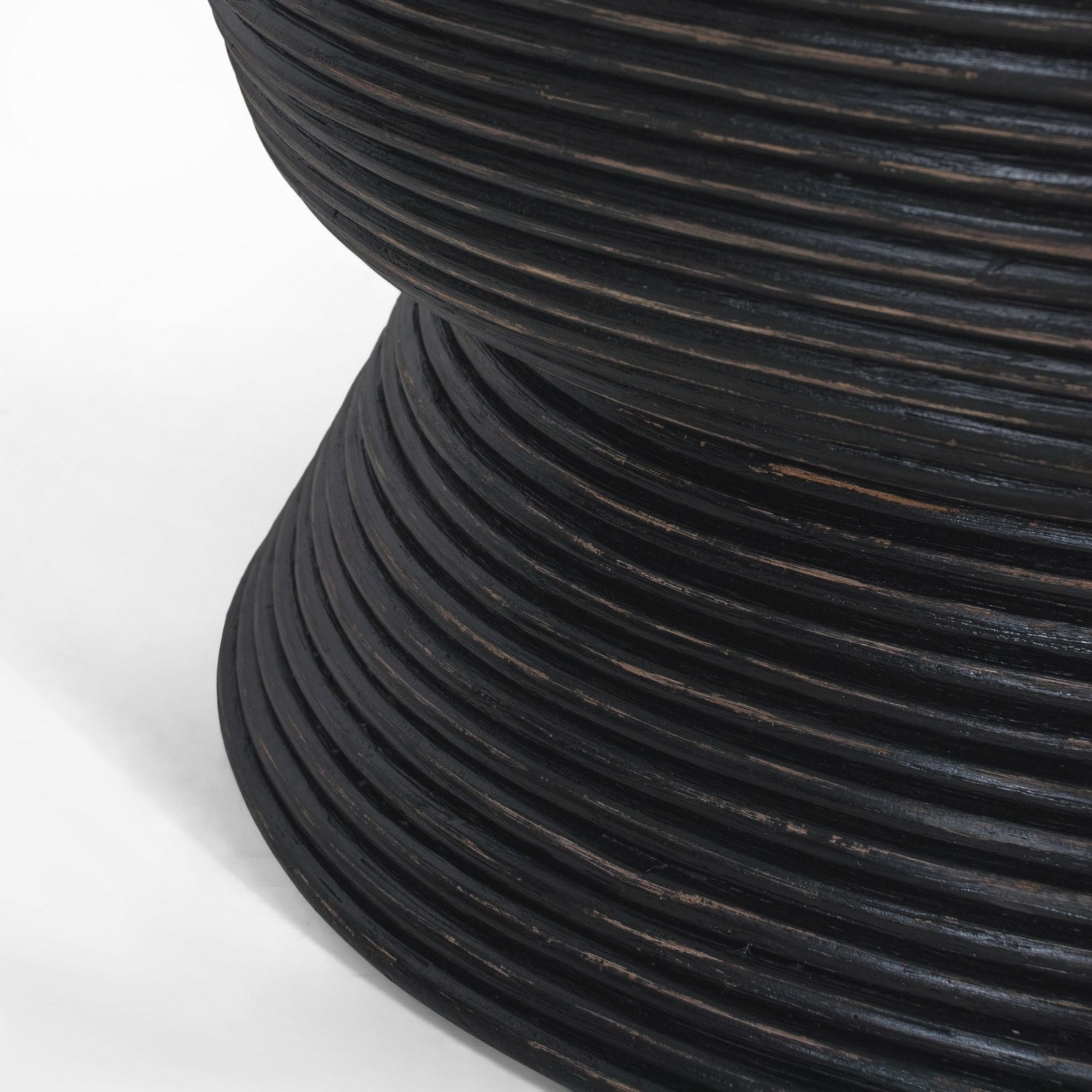 This gorgeous coffee table adds a fresh beauty to a living room. With its distinct design, round shape, black distressed colour, and glass top, the traditional style coffee table will beautify your living area. The table is designed in an exotic pattern using sustainably harvested rattan material and a metal frame. It is crafted using a unique weaving and finishing technique. Each piece is handmade from natural cane using age old traditional construction methods and so no two products are the same. Each will come with their own unique variations and look. The material ensures the table's strength, long durability, and beautiful appearance. The stunning indoor furniture will become the perfect companion for any kind of lounge or sofa, while also becoming a stopover for tea, coffee, magazines, and devices. The fully assembled coffee table comes with a one-year warranty.