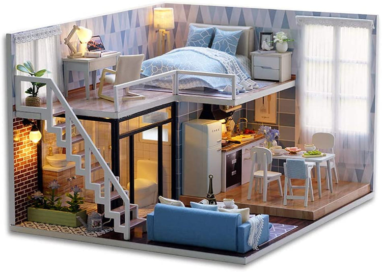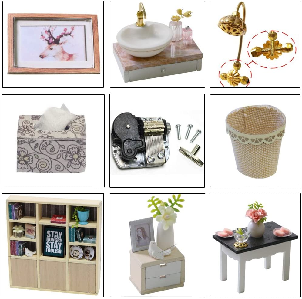 Dollhouse Miniature with Furniture Kit Plus Dust Proof and Music Movement - Valentine's Day Gift Idea