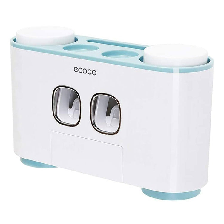 • Load image into Gallery viewer, Ecoco Wall-Mounted Toothbrush Holder with 2 Toothpaste Dispensers 4 Cups and 5 Toothbrush Slots Toiletries Bathroom Storage Rack (Blue)