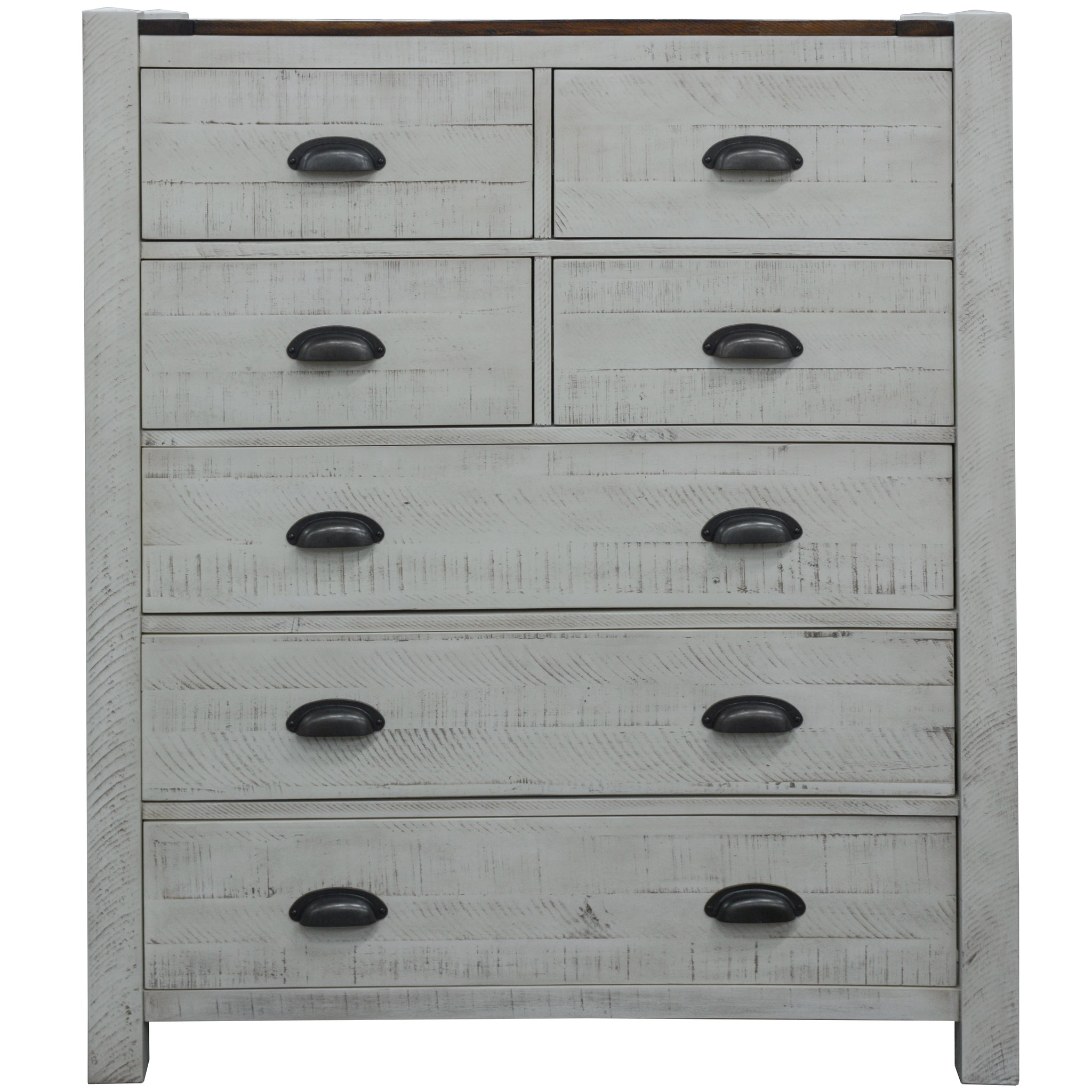 Place this beautiful tallboy in your bedroom to ensure your comfort and happiness. The tallboy, beautifully designed in the Hampton style, will make your life easier and happier. It improves storage space in your bedroom and gives it a clean appearance. The tallboy has a rich look as it features a two-tone colour palette in a rough sawn finish. It also has massive storage space in the form of 7 sizable drawers - 3 large and 4 small drawers, all with full-extension metal runners. The drawers have oval-shaped metal handles in an antique colour. It is a multi-coloured piece of furniture with a brown rustic top and a distressed almond white base. The tallboy with strong, thick legs is made of high-quality solid Acacia wood, obtained in a sustainable manner. And this makes it super-sturdy and long-lasting. The fully assembled tallboy comes with a one-year warranty.