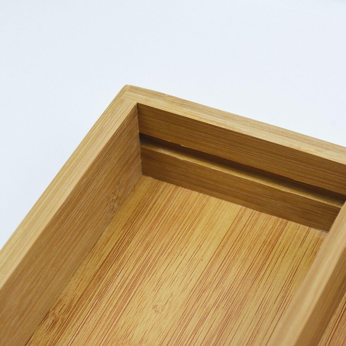 Create the perfect fit for your drawers with this Expandable Bamboo Flatware Tray. It has six main sections and the sides expand to fit most drawers perfectly. When expanded, this tray provides two extra storage sections for even more storage and organisation. Made of 100% moisture resistant bamboo, this expandable cutlery tray optimises your drawer space.