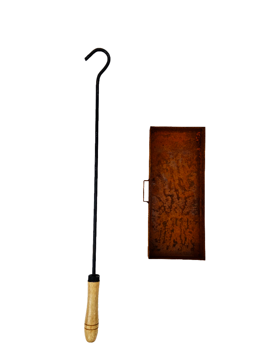 Includes Steel Poker with Wooden Handle.