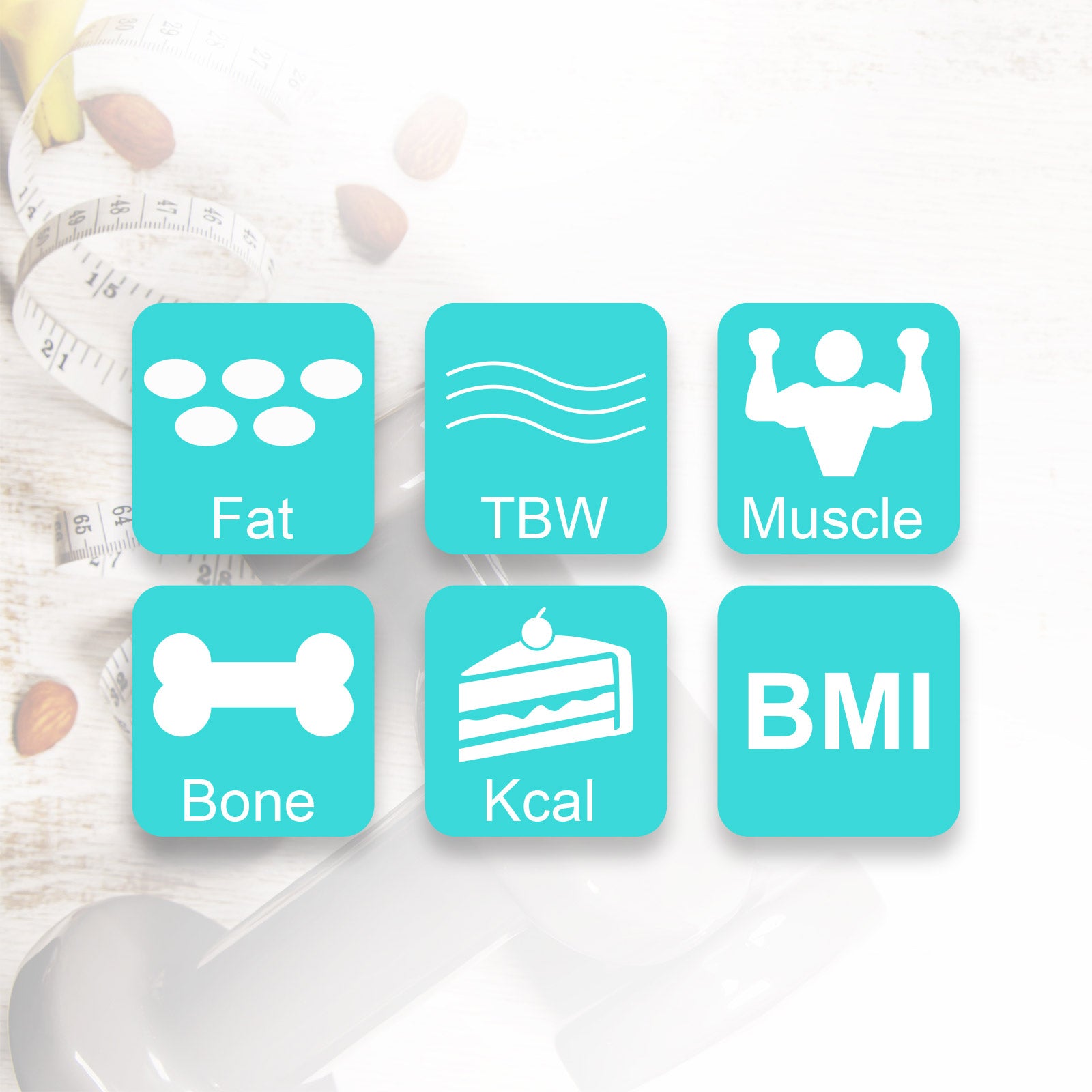 Measuring capacity:weight, body fat, hydration, bone mass, muscle mass, BMI, calories