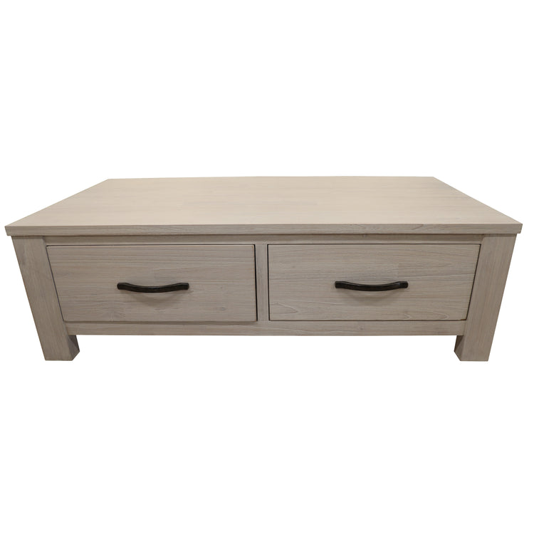 A shapely sculpted coffee table adds a layer of beauty to any interior. This highly functional and stylish coffee table, designed in coastal style, with 2 drawers will complement any existing furniture and decor in your home. The impressive furniture piece is made of mountain ash wood harvested in a sustainable way. The wood is known for attractive looks, great strength, shock-resistance, durability, and also easy maintenance. The fully assembled coffee table comes with 2 storage drawers to enhance the storage capacity of your living area. The drawers are embellished with full metal extension runners and gleaming metal handles with an antiqued finish. The coffee table comes with a one-year warranty.