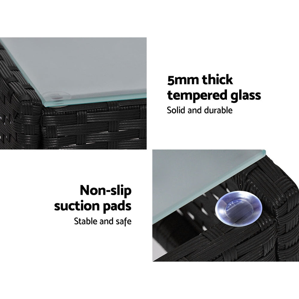Meticulously crafted, our Gardeon 4-piece Rattan Outdoor Set comprises two armchairs, a two-seater and a matching table for a beautiful integrated look. Its presence will definitely add panache and style to your deck, patio or even living room. Made of eco-friendly PE wicker and a sturdy steel frame, this set is designed to last through all weather and the test of time. The 5mm thick tempered glass top with non-slip suction pads for the table also ensures strong and safe use with total peace of mind. Not least, the cushion covers are removable and washable to maintain their pristine appearance. There is even a bonus storage cover included for you to protect the set from sun and rain when not in use, so that you can keep enjoying your garden parties for many years to come.