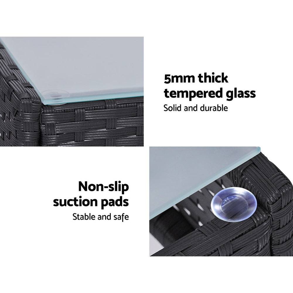 Meticulously crafted, our Gardeon 4-piece Rattan Outdoor Set comprises two armchairs, a two-seater and a matching table for a beautiful integrated look. Its presence will definitely add panache and style to your deck, patio or even living room. Made of eco-friendly PE wicker and a sturdy steel frame, this set is designed to last through all weather and the test of time. The 5mm thick tempered glass top with non-slip suction pads for the table also ensures strong and safe use with total peace of mind. Not least, the cushion covers are removable and washable to maintain their pristine appearance. There is even a bonus storage cover included for you to protect the set from sun and rain when not in use, so that you can keep enjoying your garden parties for many years to come.