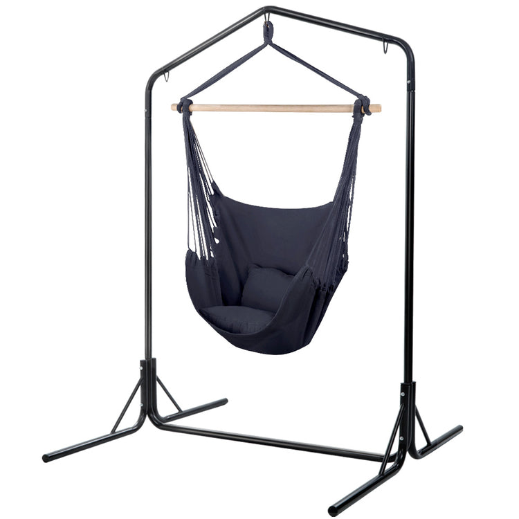 Gardeon hanging hammock chair set is a piece of excellent furniture perfect for outdoor and indoor use. It is made from quality polyester cotton blend fabric and has a solid timber rail for strength and durability, and the powder-coated steel frame is designed to be weather and rust-resistant. Our hammock chair can hold up to 120kg in weight. Plus, it’s easy to install with one single attachment point for absolute safety. This versatile furniture set is suitable to be placed by the poolside, in the backyard, or in any corner of your home. Not least, this chair offers ample support to your body.
