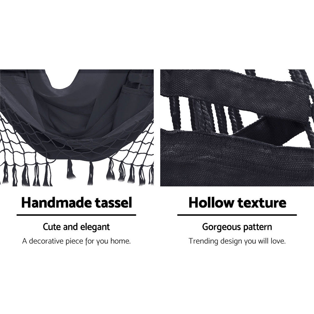 Gardeon hanging hammock chair set is a piece of excellent furniture perfect for outdoor and indoor use. It is made from quality polyester cotton blend fabric and has a solid timber rail for strength and durability, and the powder-coated steel frame is designed to be weather and rust-resistant. Our wide base hammock chair can hold up to 120kg in weight and offers stability. Plus, it’s easy to install with one single attachment point for absolute safety. This versatile furniture set is suitable to be placed by the poolside, in the backyard, or in any corner of your home. Not least, this chair offers ample support to your body.